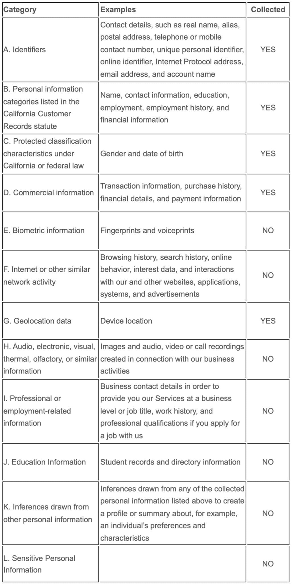 Do we process any sensitive personal information? We do not process sensitive personal information.