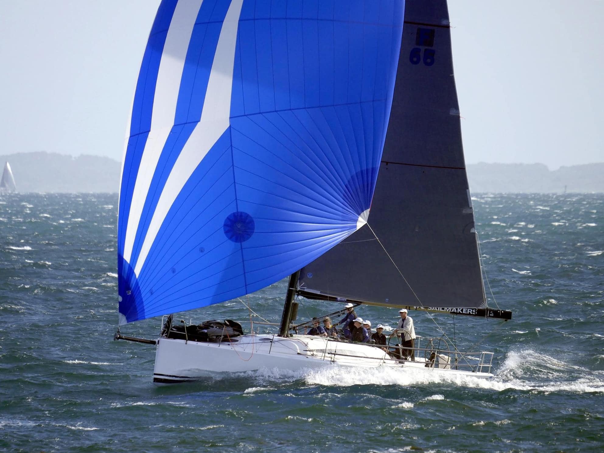 That said, beyond being an exceptional sail designer and sailmaker, Geoff is a world class sailor in his own right. Were you to talk with him about sailing downwind in big offshore seas, for example, you’d surely pick up some subtle tricks on both driving and sail trim. And, when it comes to flawless boat handling by a crew intimate with how THIS SPECIFIC boat sails best, the CHECKMATE crew is at the top of that game, too.