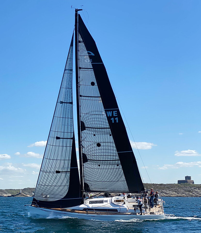An Arcona 435 with a partial taffeta layer up the leech of the main and just on the lower leech and foot of the jib. Peter Gustafsson photo/blur.se